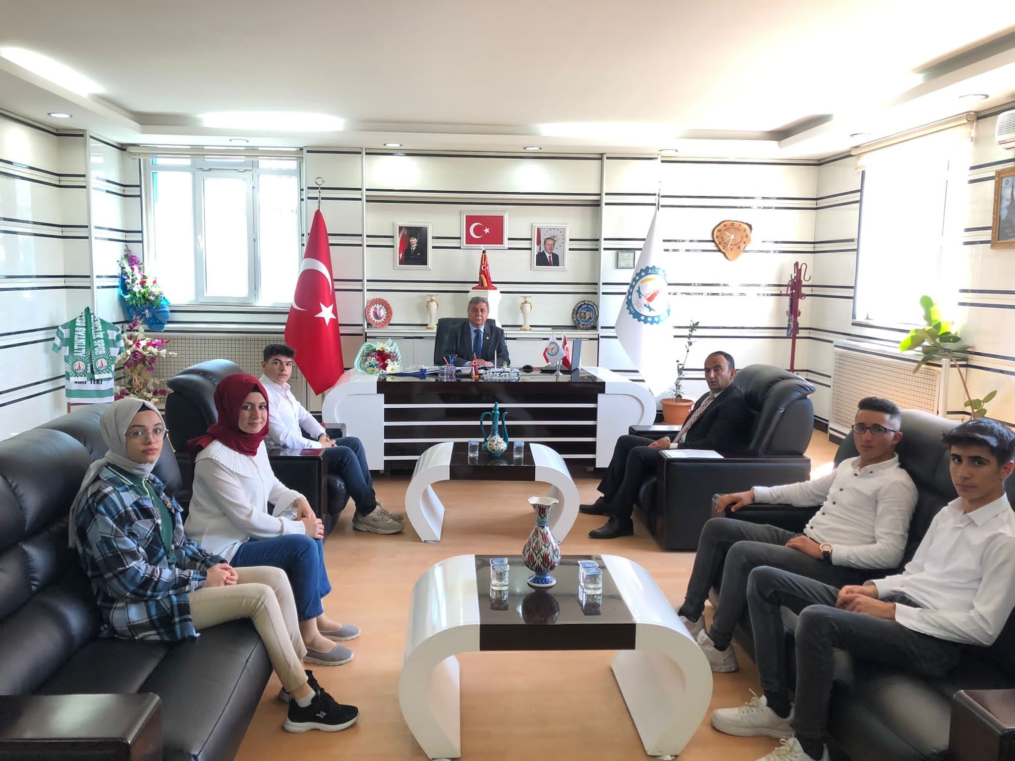 15-21 Mayıs tarihlerinde kutlanan "Gençlik Haftası" kutlamaları kapsamında, Gençlik ve Spor İlçe Müdürümüz, Sn.Mustafa Taşpınar ve Üniversite-Lise temsilcisi gençlerimiz ile birlikte Belediyemizi ziyaret ettiler. Nazik ziyaretlerinden dolayı kendilerine teşekkür ediyoruz