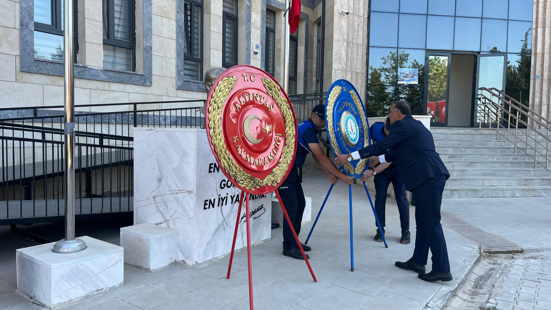 Başkanımız Sayın Hikmet Tunç; Kaymakam Vekilimiz Sayın Alperen Teltik, Cumhuriyet Başsavcısı Sayın Memduh Ömür Harput, MHP İlçe Başkanımız Sayın Ramazan Yurt, MHP İl Genel Meclis Üyesi Sayın Ömür Eldiven ve protokol üyelerinin katılımlarıyla gerçekleşen, 30 Ağustos Zafer Bayramını kutlamaları kapsamında, hükümet konağı Atatürk Anıtının ardından Kırık Kağnı ve Üç Komutan Anıtı, Yüzbaşı Şekip…