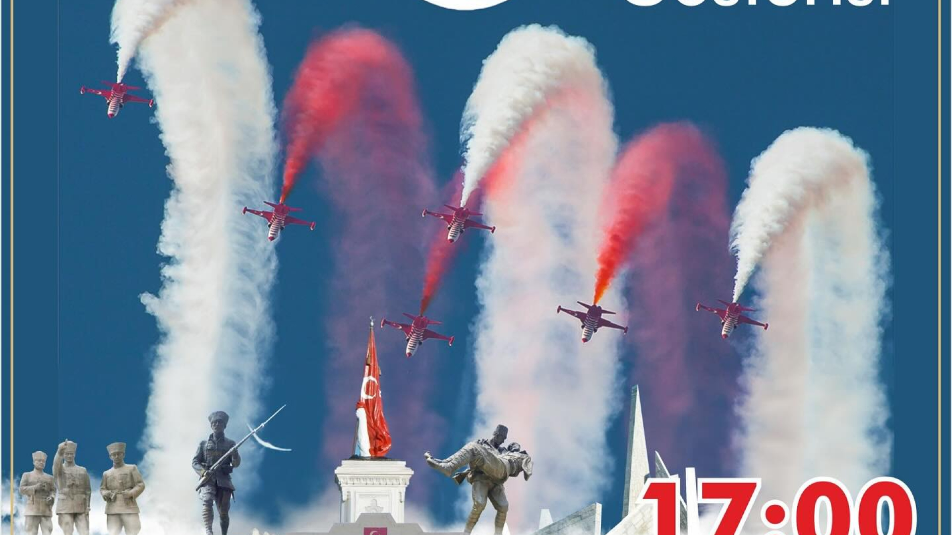 30 Ağustos Zafer Bayramı’nda gökyüzü Türk Yıldızları ile şenlenecek! Kütahya Zafertepeçalköy Tören Alanı’nda, zaferin 103. yıl dönümünde ay yıldızlı göklerde muhteşem bir gösteriye tanık olacağız. Zafertepeçalköy Tören Alanı, Altıntaş 17:00 30 Ağustos 2025